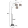 Dit artikelnummer wordt geleverd met grijs linnen lampenkappen. Bestel de 3826ZW booglamp nu online met de service en garantie van Lampbestellen.nl Dit artikelnummer is een combinatie van armatuur 3821ZW en 3 lampenkappen, artikelnummer K3084RS