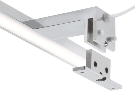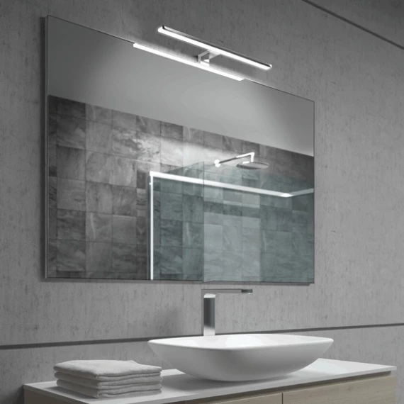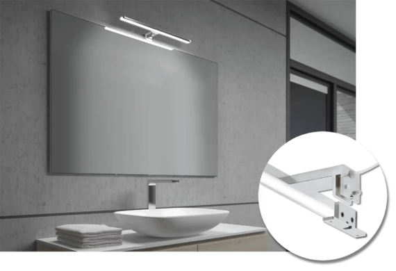 Een sierlijk vormgegeven badkamer armatuur is deze Aalto. Geschikt voor montage direct op een spiegel of op een kast. Kan zonder driver direct aangesloten worden op een geschakeld lichtpunt 220V. Het armatuur kan nu zowel op een kast als ook direct op een spiegel gemonteerd worden.