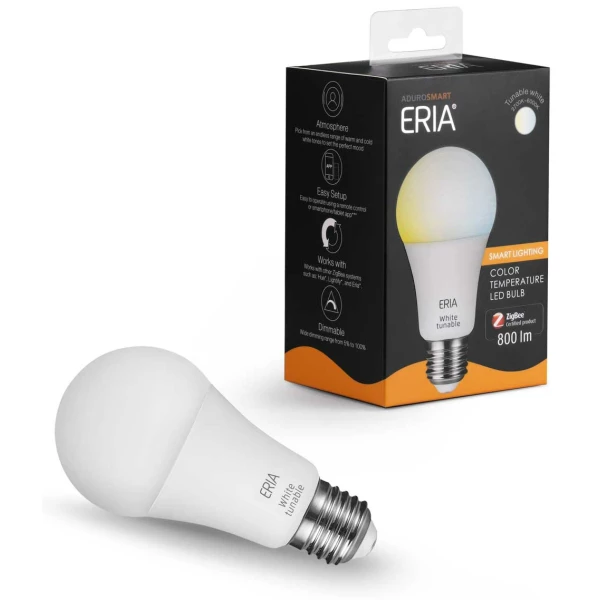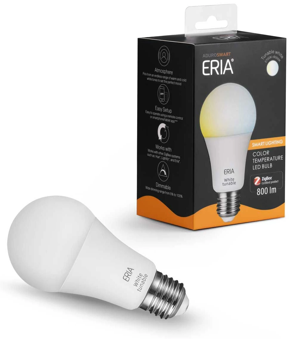 De AduroSmart A60-lamp heeft afstembaar wit licht en kan op afstand worden bediend met een draadloze schakelaar zonder dat er een hub nodig is. De lichtbron biedt 50.000 witte tinten. De lamp kan worden bediend met uw smartphone/tablet, maar ook via Amazon Alexa en Google Assistant. Gebruik de lamp gewoon met een ZigBee-compatibele hub zoals de AduroSmart Hub, Philips Hue of SmartThings hub.