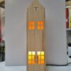 De Amsterdamse Grachtenpand-Wijnkist Lamp is een unieke lamp gemaakt van een wijnkist die de kenmerkende architectuur van de Amsterdamse grachtenpanden nabootst. Het ontwerp geeft de gebruikte wijnkist een tweede leven door deze te transformeren tot een decoratieve lamp. Met details die lijken op de gevels van de historische panden langs de grachten van Amsterdam, brengt deze lamp een vleugje van de Nederlandse charme in huis, terwijl het ook duurzaamheid en creatief hergebruik benadrukt.