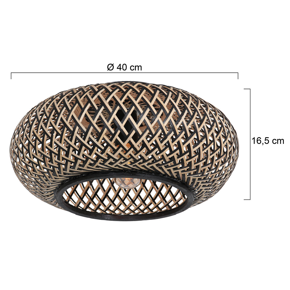 Met een diameter van 40 cm zorgt de lampenkap voor een fascinerend lichtspel op de muren en het plafond dankzij de open structuur. Deze handgemaakte lamp van bamboe met hout is 16,5 cm hoog en heeft een natuurlijke bamboekleur met zwarte accenten. Bestel de 3129BE nu online en profiteer van de service en garantie van lampbestellen.nl