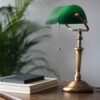 Deze Mooie klassieke bureaulamp / tafellamp wordt ook wel een notarislamp genoemd. Een tijdloos model vervaardigd uit bronskleurig metaal en groen glas. Het glas is kantelbaar en voorzien van een E27 fitting (maximaal 60 watt). Geschikt voor LED lampen. Bureaulamp is te bedienen door trekschakelaar. Bestel deze notarislamp nu online met de service en garantie van Aldor Verlichting.