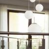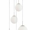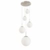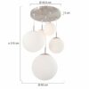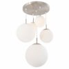 Deze Plafondlamp met 5 witte glazen bollen en metalen plafondplaat. 1x bol groot, 2x bol midden, 2x bol klein. Alle bollen voorzien van een E27 maat fitting maximaal 40 watt. Uit de serie Bollique. De kabels aan de bollen zijn uitschuifbaar tot 315 cm waardoor deze lamp ook zeer geschikt is als videlamp. Bestel deze plafondlamp nu online met de service en garantie van Aldor Verlichting.
