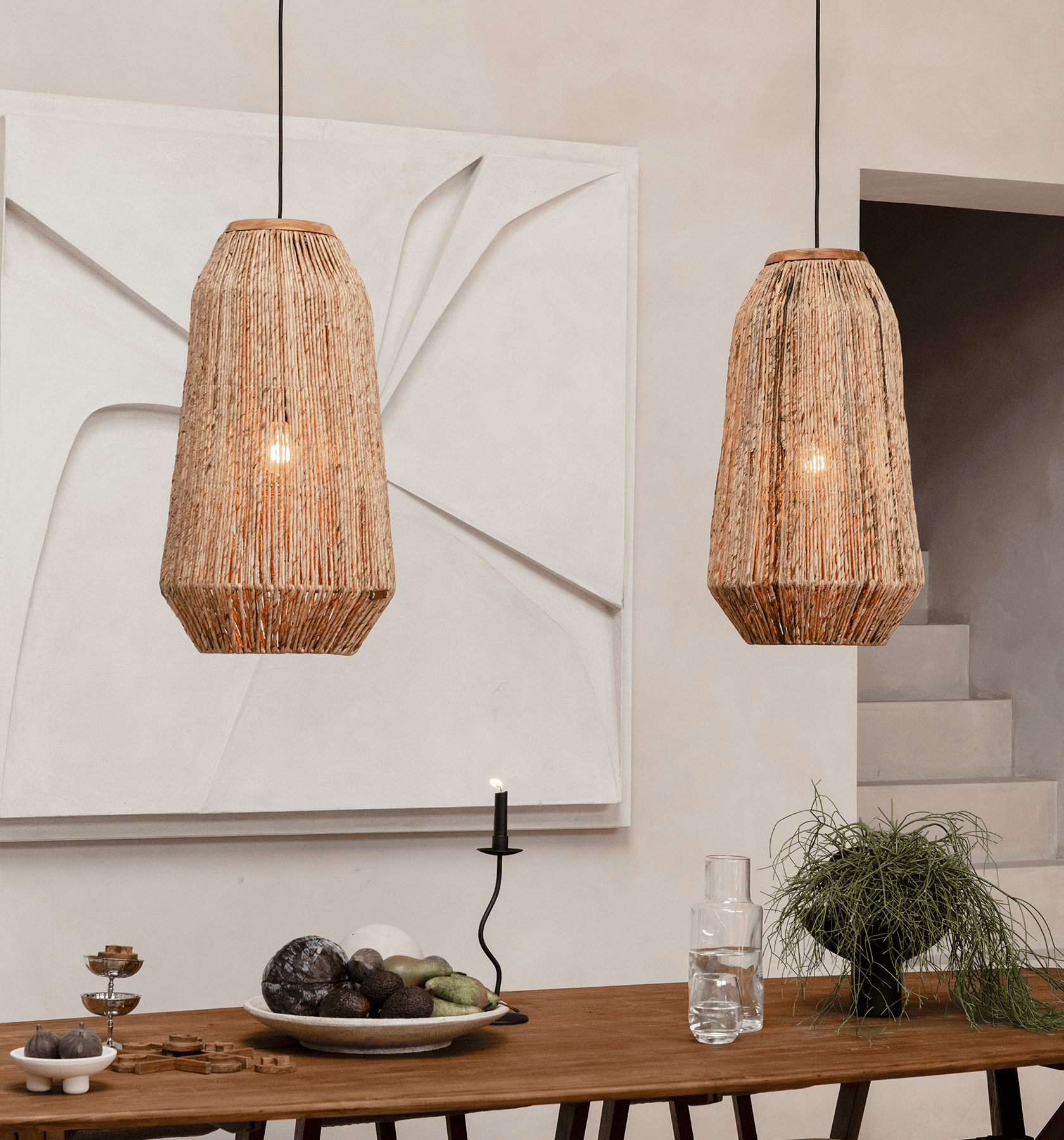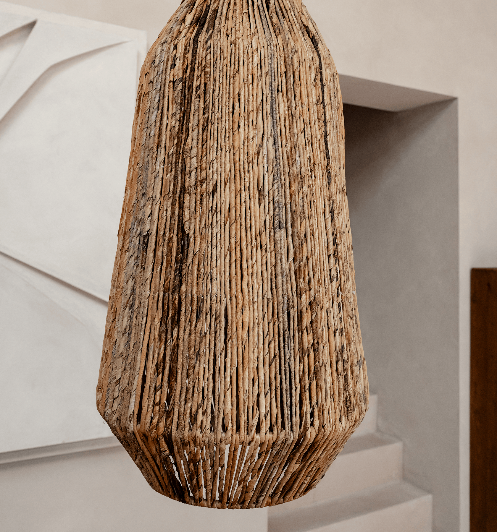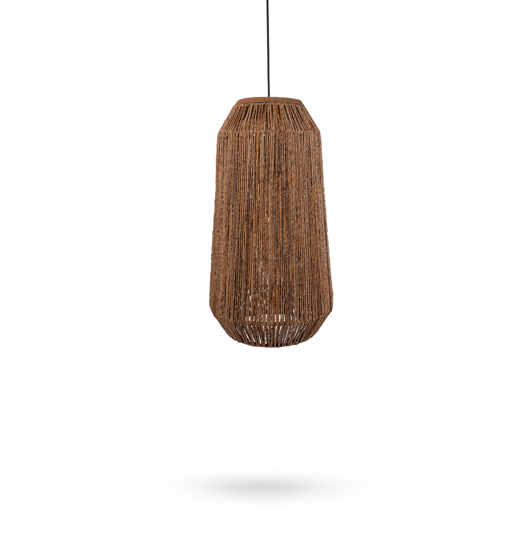De Cone hanglamp wordt met zorg en vakmanschap gemaakt van duurzame abaca vezels. Dit materiaal geeft de lamp niet alleen een warme, natuurlijke uitstraling, maar zorgt er ook voor dat het licht prachtig gefilterd wordt. Zo ontstaat er een zachte en sfeervolle gloed die jouw woonkamer, eetkamer of slaapkamer direct een gezellige en luxe sfeer geeft.