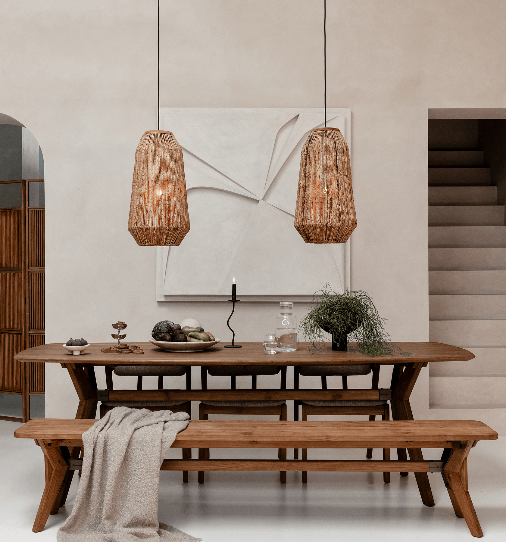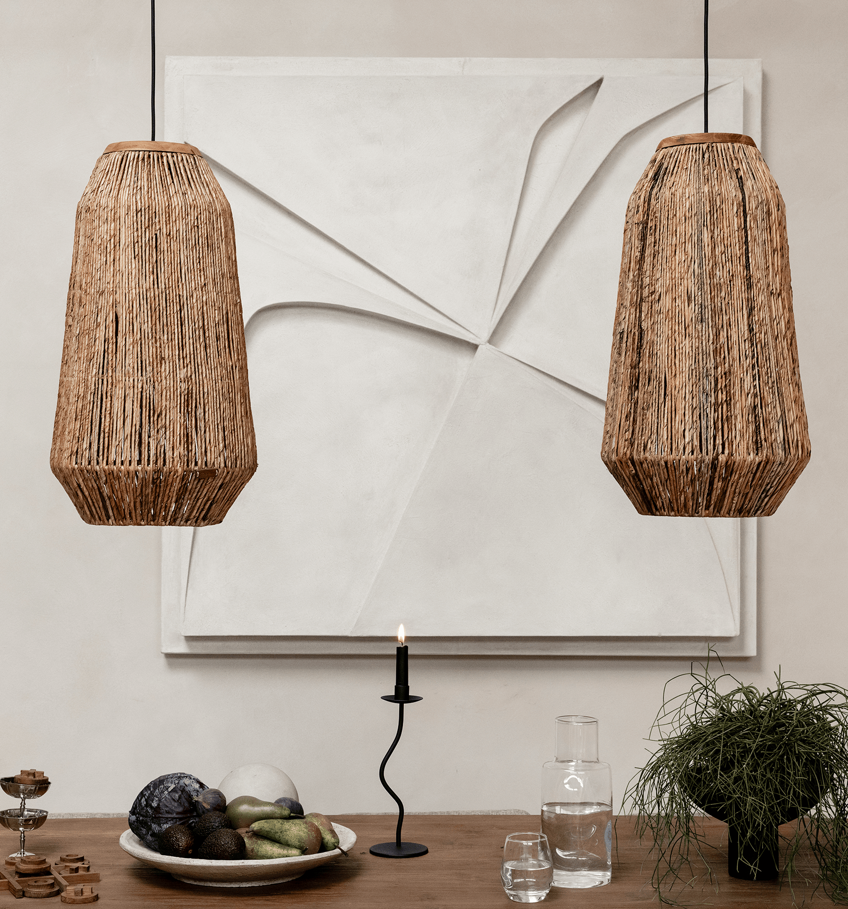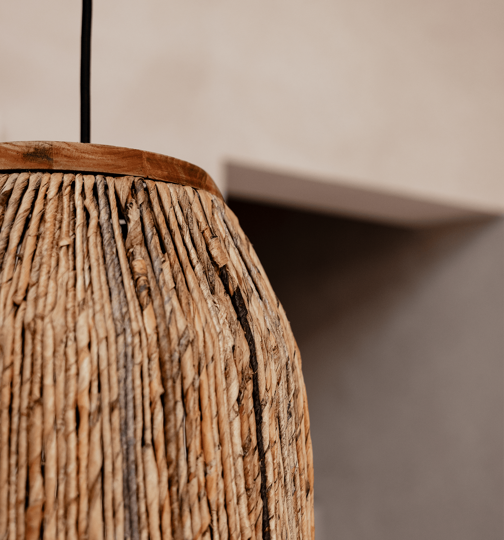 De Cone hanglamp wordt met zorg en vakmanschap gemaakt van duurzame abaca vezels. Dit materiaal geeft de lamp niet alleen een warme, natuurlijke uitstraling, maar zorgt er ook voor dat het licht prachtig gefilterd wordt. Zo ontstaat er een zachte en sfeervolle gloed die jouw woonkamer, eetkamer of slaapkamer direct een gezellige en luxe sfeer geeft.