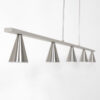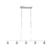 Stalen hanglamp uit de Vortex serie met 5 conisch gevormde lichtpunten. Elke lichtpunt heeft een vaste LED-module van 5 Watt met 1100 Lumen en instelbare lichtkleur van 2700 Kelvin tot 4000 Kelvin. De lamp is voorzien van een touchdimmer voor eenvoudige bediening. Tijdens installatie kan de hoogte van de hanglamp aangepast worden van 85 cm tot 145 cm. De lengte van de Vortex is 120 cm. Bestel nu de 3066ST hanglamp online en profiteer van de service en garantie van Lampbestellen.nl De lamp is geschikt voor binnen en wordt gedeeltelijk gemonteerd geleverd, met een garantie van 2 jaar.