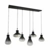 Deze hanglamp Flere met Gradientglas 2672ZW Zwart 6 lichts van Steinhauer is echt een topper boven een grote tafel. Met zijn lengte van 1 meter en 40 cm en een breedte van 25 cm en half smoke glas is deze lamp een stoere blikvanger. De volledige serie Steinhauer Flere serie bestaat uit een 6 lichts en ook als losse exemplaren. Zie deze ook op onze site.