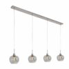 Mooie 4-lichts hanglamp uit de Lotus serie. Door het geborstelde staal en de getinte glasbollen krijgt de lamp een modern uiterlijk. Alle bollen zijn voorzien van een E14 (kleine) fitting en geschikt voor alle soorten lichtbronnen tot 40 Watt. De lengte van de lamp is 140 centimeter, tijdens monteren is de lamp in hoogte verstelbaar tot maximaal 150 centimeter, de minimale hoogte is 25 centimeter. De diameter van het glas is 16 centimeter en de hoogte is 13 centimeter. De lamp is dimbaar middels een externe dimmer en de geschikte dimbare lichtbron. Word exclusief lichtbron geleverd. Bestel de 1900ST hanglamp nu online met de service en garantie van Lampbestellen.nl