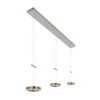 Deze prachtige hanglamp Piola is voorzien van drie lichtpunten. Hierdoor is het een ideale lamp om te hangen boven de eettafel of boven een kookeiland. Het voorziet de kamer van prachtig helder licht. Het maakt niet uit hoe u de kamer heeft ingericht en welke kleuren er zijn gebruikt in het interieur. Deze lamp zal er zeker bij passen, aangezien deze is ontworpen in de kleuren geborsteld staal en transparante ringen ook onderdeel uitmaken van het ontwerp van de lamp. Door het inknijpen van het metalen hulp stuk tussen de kabels is deze lamp eenvoudig in hoogte verstelbaar. Door het boven licht zal uw vertrek groter lijken. Met het onder licht kunt u sfeerlicht en leeslicht creëren. Dimbaar door een externe muurdimmer.