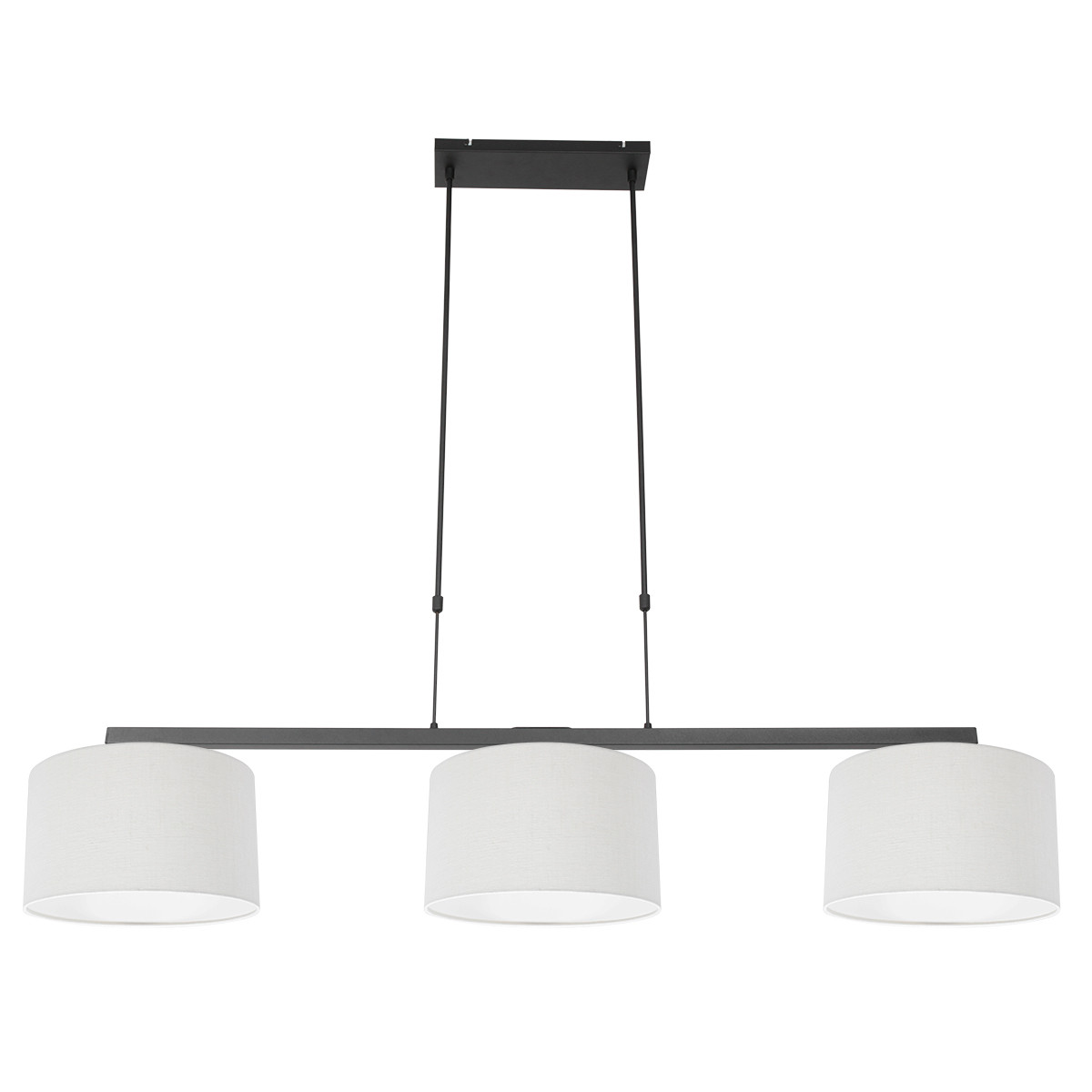 Zwarte hanglamp 3-lichts uit de Stang serie. De lamp is vervaardig uit metaal en voorzien van een mat zwarte coating, wordt geleverd met 3 kappen in Wit Linnen. Deze Stang hanglamp heeft 3 lichtpunten, allen voorzien van een E27 (grote) fitting, Elke fitting is geschikt voor een lichtbron tot maximaal 40 Watt. Tijdens montage is de hanglamp in hoogte verstelbaar van minimaal 97 centimeter tot maximaal 167 centimeter. Bestel de 3461ZW hanglamp nu online met de service en garantie van Lampbestellen.
