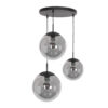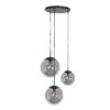 Voeg een vleugje artistiek toe aan uw interieur met de Zwarte Hanglamp Bollique 3123ZW. Deze hanglamp met drie lichten heeft rookkleurige glazen bollen die een subtiel spiegeleffect creëren. De bollen hebben drie verschillende afmetingen: 30 cm, 25 cm en 20 cm. De lamp is voorzien van een E27 fitting, waardoor u de hoogte van de bollen kunt aanpassen tussen 35 en 200 cm. Met een diameter van ongeveer 35 cm is deze lamp zeer divers in te zetten.
