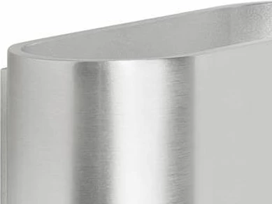 Deze ovale wandlamp W3619.30 van Highlight met Aluminium van buiten en Aluminium van binnen maakt het een chique effect. De lamp is gemaakt van aluminium. De lamp is dimbaar via een externe dimmer. Let wel op bij monteren dat het gat waar de draden uit komen niet te groot is. Deze lampen hebben in de regel een wat kleine montageplaat aan de achterkant. Advies is dan ook om alleen een stukje Pvc pijp uit de muur te laten komen.