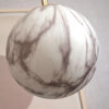 De elegante en mooi verlichte Carrara hanglamp voegt een vleugje elegantie toe aan jouw kamer. Gemaakt van metaal met een matte gouden afwerking, is de lamp uitgerust met een witte glazen bol met marmeren print en een gouden detail op het snoer. De diameter van de lamp is 22 cm, en het is geschikt voor een E14 lamp.