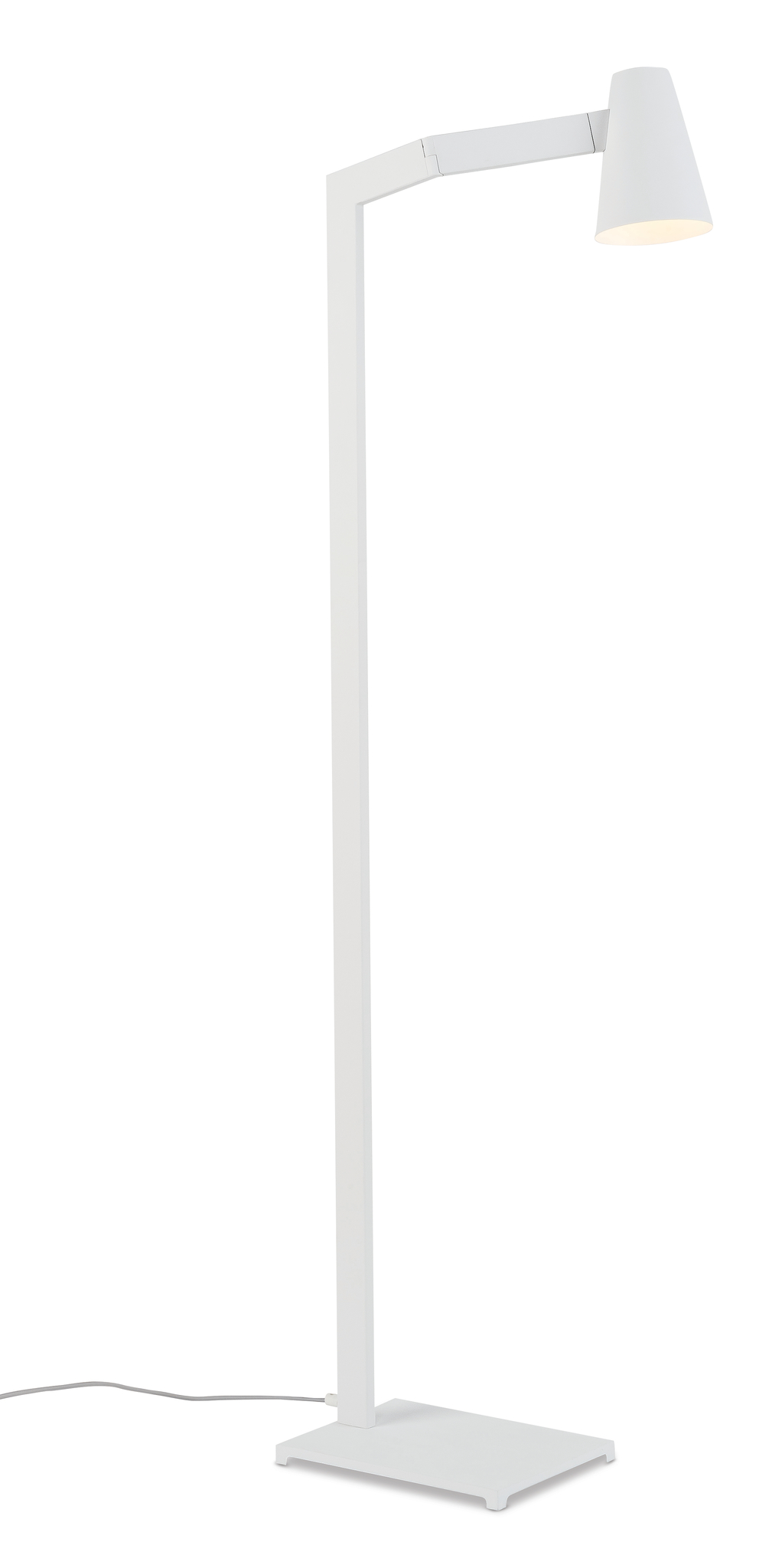 De vloerlamp Biarritz heeft een robuuste standaard van stedelijk metaal met een witte afwerking. De draaibare kap maakt het de perfecte leeslamp. Deze opvallende lamp voegt een vleugje klasse toe aan je kamer met een afmeting van 41x20x142cm. De lamp heeft een geschuurde afwerking en een chique uitstraling.