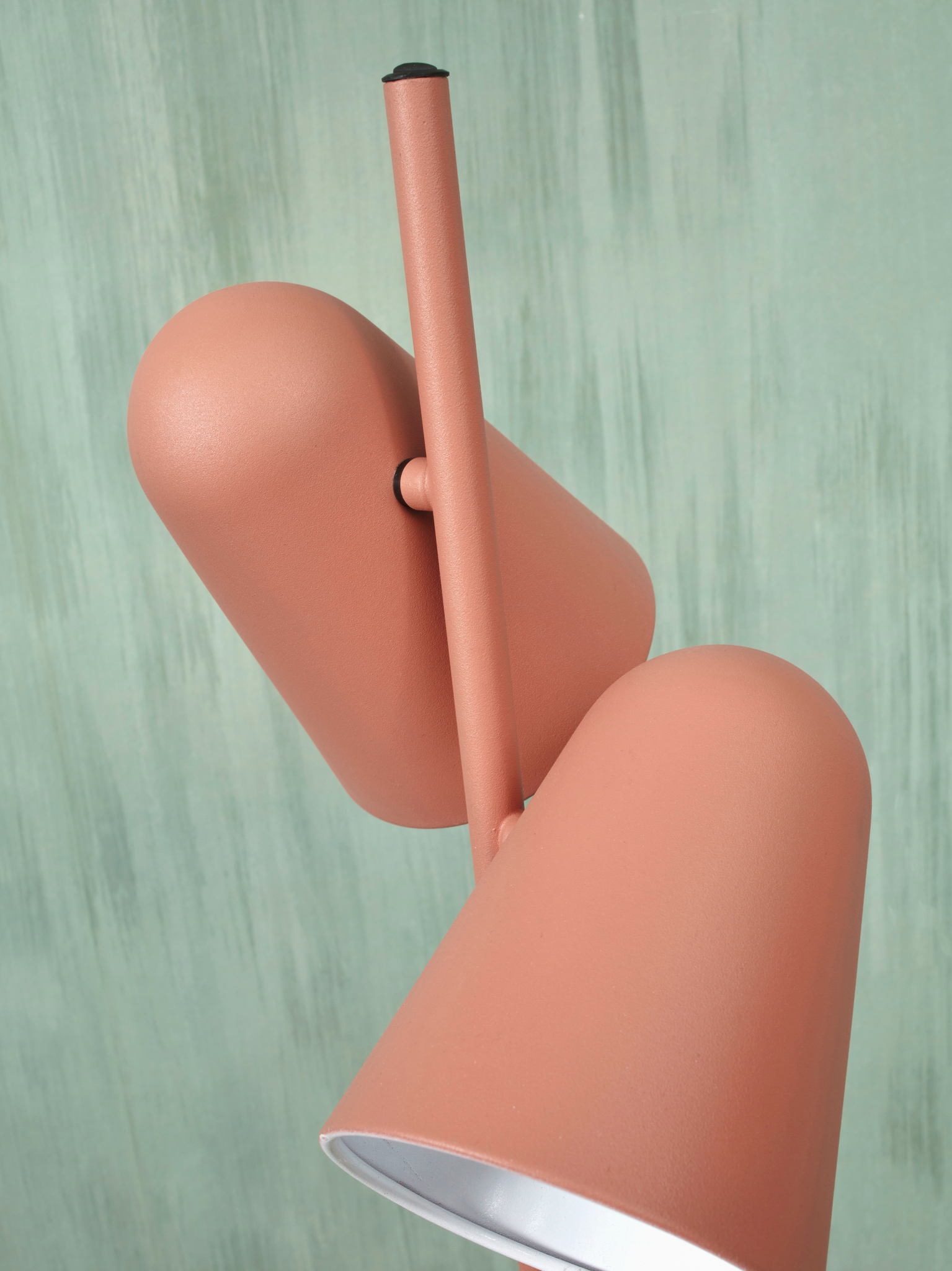 De vloerlamp Salamanca, met een afmeting van 145 cm x 28 cm, straalt moderne stijl en eenvoud uit. Het is een functionele lamp die ideaal is om bij te lezen. Het frame is oranje en heeft twee kappen (16 cm x 12 cm) die beide 180 graden draaibaar zijn. Bovendien bevindt zich een aan-uit knop aan de bovenkant van het frame.