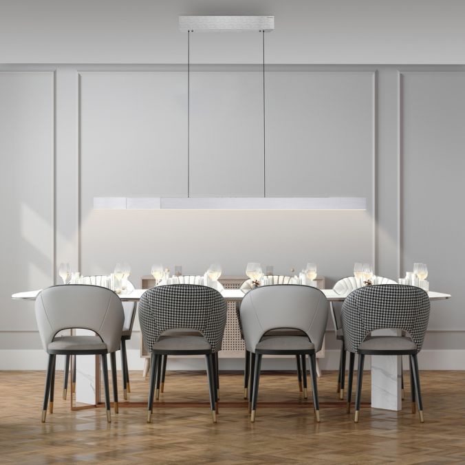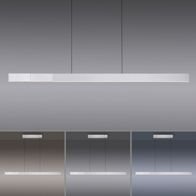De Pure Moto-Rise Hanglamp heeft een uitschuifbare lengte van 120 tot 200 cm, een breedte van 5,5 cm, en een verstelbare hoogte van 35 cm tot 240 cm. Het ontwerp is uitgevoerd in aluminium met een houten afwerking, en is beschikbaar in zwart, donkerbruin, grijs, aluminium of messing. De lamp bevat 39 Watt geïntegreerde LED-lichtbronnen, die samen 4680 Lumen uitstralen. Het licht is dimbaar via de afstandsbediening of de aanraakvlakken aan de bovenkant van de lamp, waarmee u ook de lengte kunt aanpassen en de lamp in- of uitschakelen.