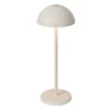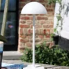 Op zoek naar een buitenlamp / binnenlamp die je volgt waar je ook gaat of staat? Dit is Joy in het wit. Deze lamp heeft zijn naam niet gestolen, want met zijn hoogwaardige accu brandt de schemerlamp tot wel 7 uur op volle sterkte. Niets dan plezier dus met deze tafellamp voor buiten en binnen. Met zijn halfronde lampenkap en lange steel doet Joy een tikkeltje retro aan. Deze aluminium buitenlamp is uitgerust met een geïntegreerde ledlichtbron die je eenvoudig dimt via een touchdimmer op de lampenkap. Joy is 12 centimeter breed en 32 centimeter hoog.