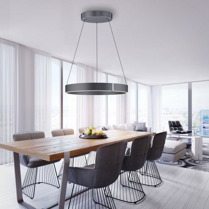 Ervaar de perfecte mix van elegantie, innovatie en gebruiksgemak met de PURE E-Clipse LED hanglamp in grijs geanodiseerd aluminium. Een blikvanger boven je eettafel met slimme technologie voor ultiem comfort.