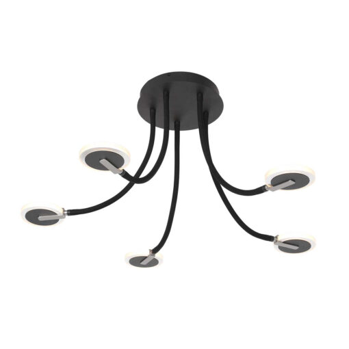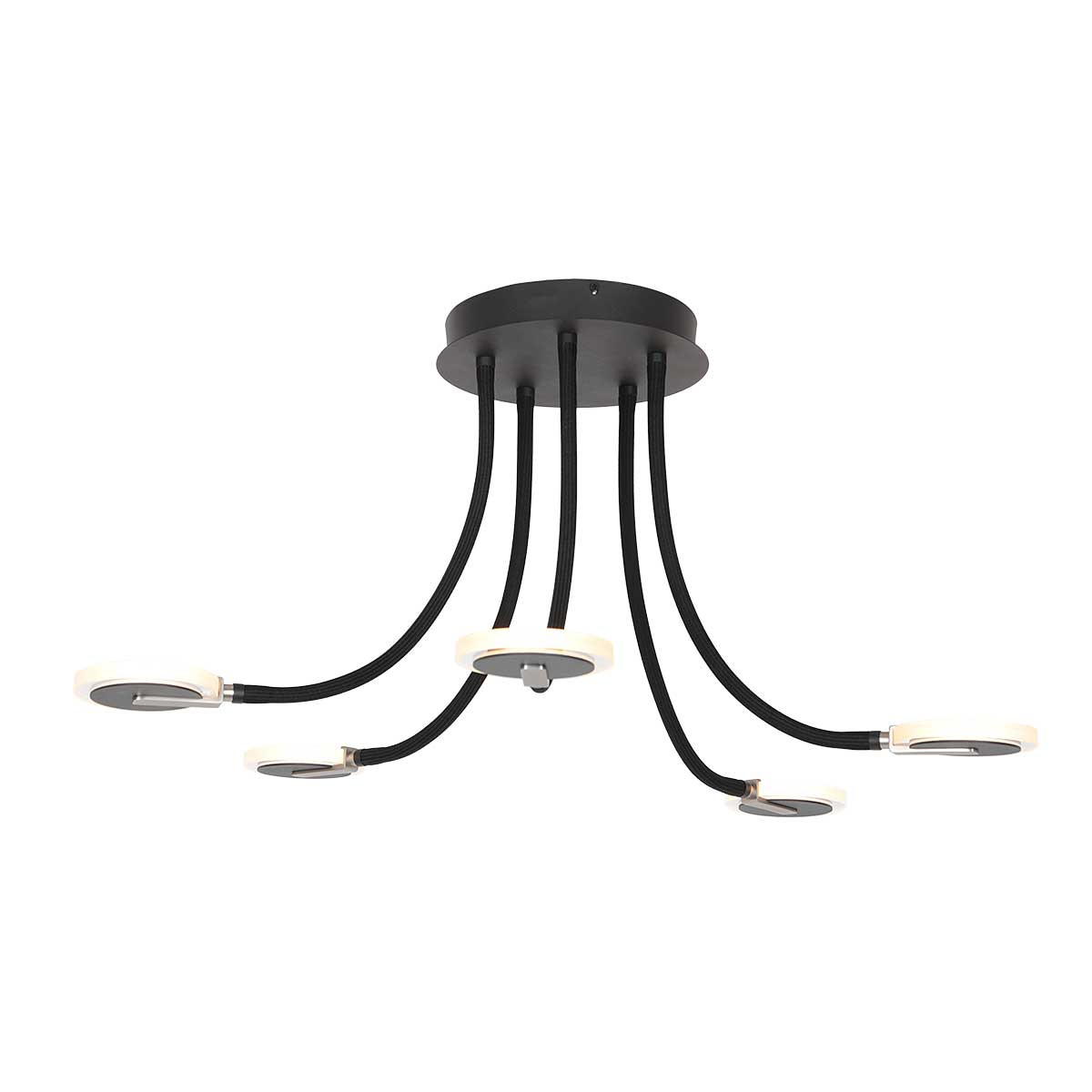 Moderne Plafondlamp uit de Turound serie met helderglas als reflector en flexibele armen. De lamp is voorzien van een vervangbare LED module van 10 Watt met 2700 Kelvin en 5000 Lumen. De plafondlamp is dimbaar middels externe dimmer. De plafondlamp heeft een totale breedte van 91,5 centimeter. Morgen worden aangesloten op het lichtnetwerk.