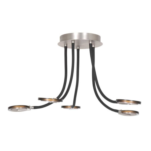 De Turound 3376ST is een moderne plafondlamp met een verfijnde afwerking in staal en een uniek ontwerp. Deze lamp is uitgerust met vijf flexibele armen, waardoor u eenvoudig de richting van het licht kunt aanpassen naar uw voorkeur.