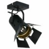 Plafondspot, studiolamp 1 lichts model, een unieke spot voor in uw woonkamer of slaapkamer. Vervaardigd uit metaal met een zwarte poedercoating en een gouden binnen kant. Voorzien van een E27 (grote) fitting en geschikt voor alle lichtbronnen tot 40 watt. De spot is draaibaar en kantelbaar. Wordt geleverd exclusief lichtbron. Dimbaar middels een externe dimmer en led dimbare lichtbron.