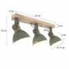 Deze groene stoere 3-lichts plafond of wandspot komt uit de Gearwood Spot serie van Mexlite. Deze industriële grorne 3-lichts spot is draaibaar en kantelbaar middels grote verstel wielen en beschikt over een E27 fitting geschikt voor alle lichtbronnen tot maximaal 40 Watt. De 3 lichts is dimbaar, middels niet meegeleverde externe dimmer en geschikte lichtbron. Vervaardigd uit metaal met houten accenten. Heeft een groene glimmende reflektor. De diameter van de kap is 15 centimeter en de totale hoogte van het armatuur is 19 centimeter. Bestel de 2133G plafondspot nu online met de service en garantie van lampbestellen. nl