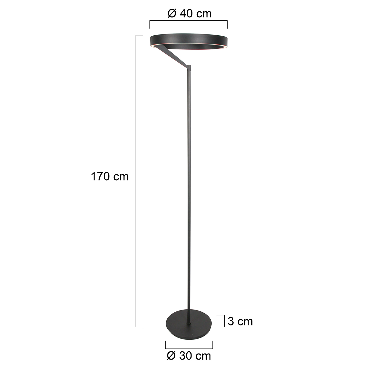 Ronde zwarte vloerlamp Mykty 4201ZW – Ø40 cm, 170 cm hoog, 5200 lumen, dimbaar