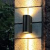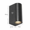 Deze compacte buitenlamp met een zwarte moderne kleur geeft zowel van de onderkant, als de bovenkant licht. De behuizing is gemaakt van aluminium, afgewerkt met een glasplaat en voorzien van een light sensitive sensor. De krachtige lichtstraal verlicht het huis en tuin op een efficiënte manier. De zwarte lamp wordt inclusief 2 GU10 (345 Lumen, 2700 Kelvin) lichtbronnen geleverd. De compacte muurlamp heeft een diepte van 9 centimeter en is 15,5 centimeter hoog. Deze buitenlamp beschikt over een IP44 waarde. Dit betekent dat hij spatwaterdicht en stofvrij is. Bestel de 2720ZW buitenlamp nu online met de service en garantie van Lampbestellen.nl