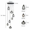 Deze hanglamp 7-lichts komt uit de Reflexion serie. De 7-lichts hanglamp is vervaardigd uit staal en glas. Elke lichtbol is afzonderlijk in hoogte verstelbaar, tijdens montage tot maximaal 350 centimeter, waardoor u een speels effect kan creëren. De Reflexion is voorzien van zeven E27 (grote) fittingen en geschikt voor lichtbronnen tot maximaal 40 watt, deze worden niet meegeleverd. De lamp is dimbaar middels een, niet meegeleverde, externe dimmer en geschikte lichtbron. De plafondplaat heeft een diameter van 50 centimeter. Bestel de 2679ZW hanglamp nu online met de service en garantie van Lampbestellen.nl