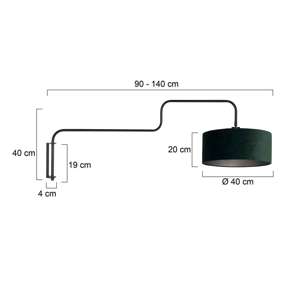 De zwenkarm kan tot 150 cm worden uitgeklapt, waardoor u het licht precies kunt richten waar u het nodig heeft. De kantelbare E27 fitting zorgt ervoor dat de prachtige groene velours kap – met een diameter van 40 cm en een hoogte van 20 cm – altijd recht hangt, ongeacht de positie van de arm. Dit creëert een elegante en sfeervolle verlichting die elke ruimte een luxe uitstraling geeft.