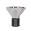 Een eigentijdse tafellamp uit de Ambiance serie, vervaardigd uit mat zwartkleurig metaal/staal en smoke glas. De lamp is voorzien van een E27 (grote) fitting en geschikt voor lichtbronnen tot 40 Watt Bediening van de lamp gaat middels de schakelaar in het snoer. In combinatie met de juiste lichtbron kunt u de lamp ook dimbaar maken. De hoogte van de tafellamp is 25 centimeter en heeft een diameter van 26 centimeter. Wordt geleverd met snoer van 150 centimeter.