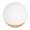 Wit glazen tafellamp / bureaulamp met een houten voetje waarin de touch dimmer is geplaatst. Schakelt zodra men het metaal aanraakt (4 standen). Ideaal als bedlamp. Wit glas (handwerk). Voorzien van een G9 fitting. Wordt inclusief LED lichtbron geleverd. Uit de serie Ancilla LED. Bestel deze tafellamp nu online met de service en garantie van Lampbestellen.nl