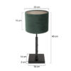 | Kleuromschrijving | Mat zwart met velours groene stoffen kap |