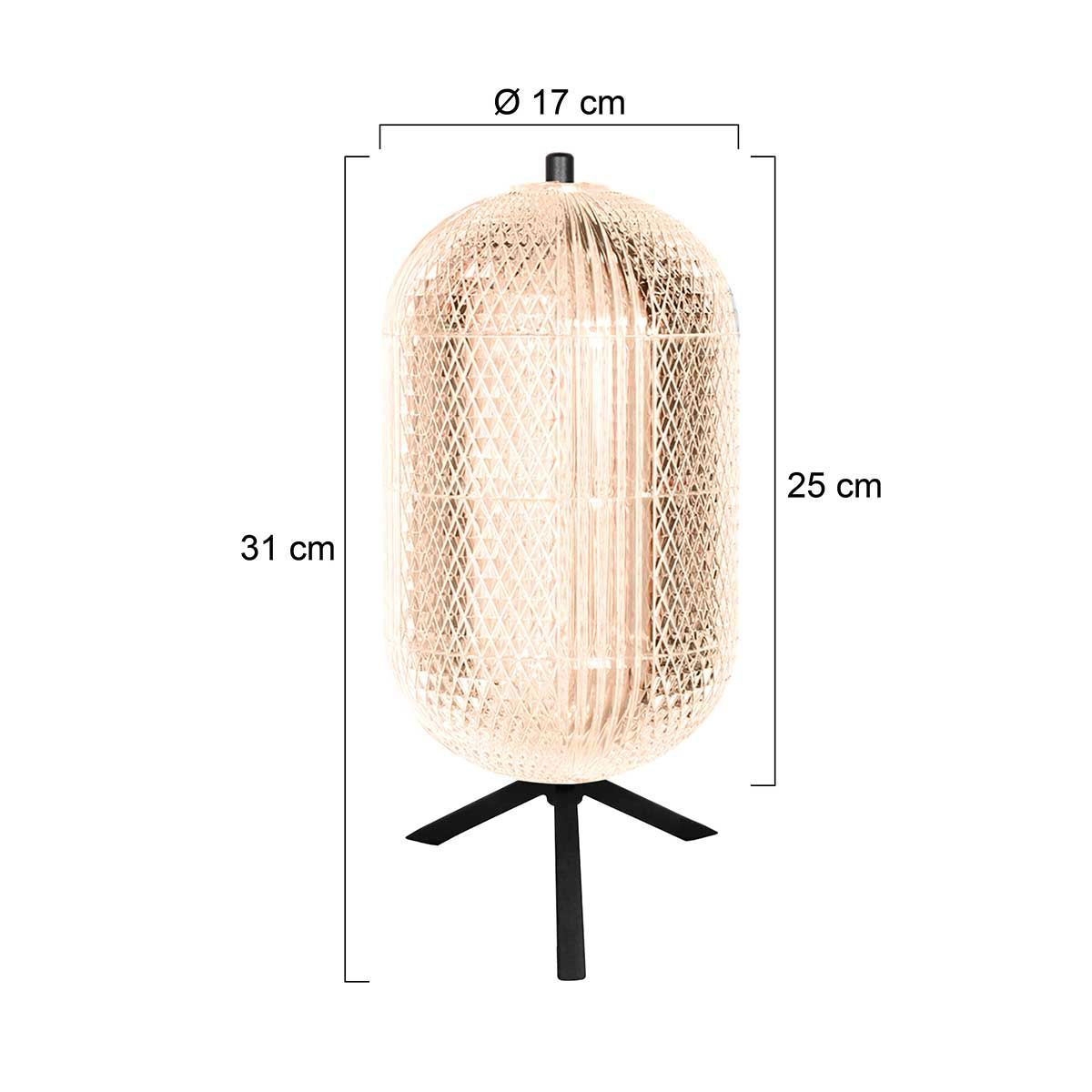 De lamp is 32 cm hoog en heeft een driepotig voetje. In de Geripu serie is ook een speelse hanglamp beschikbaar, de 3840ZW.