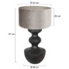 De Lyons 3476ZW tafellamp. Deze tafellamp, vervaardigd uit hoogwaardig hout, straalt een diep donkerbruine, bijna zwarte kleur uit en is voorzien van een zilverkleurige veloursstof kap met een diameter van 30 cm en een hoogte van 18 cm. Met een hoogte van 58 cm en een diameter van 15 cm en een E 27 fitting biedt de tafellamp de ideale combinatie van stijl en functionaliteit. De aan/uit schakelaar in het snoer zorgt voor gemak in gebruik.