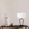 Zwarte tafellamp uit de Stang serie. Het armatuur is vervaardigd uit metaal en voorzien van een mat zwarte coating, wordt geleverd met een witte chintz kap van 40 centimeter doorsnede en 20 centimeter hoog. De lamp heeft een E27 (grote) fitting en is geschikt voor lichtbronnen tot 40 Watt. Doormiddel van een gewricht onder de fitting is de kap altijd recht te zetten. Wordt geleverd met een kunststof snoer van 150 centimeter. Bestel de 3504ZW tafellamp nu online met de service en garantie van de fysieke lampen winkel in Castricum Noord-Holland.