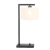 Zwarte tafellamp uit de Stang serie. De lamp is vervaardigd uit metaal en voorzien van een mat zwarte coating, wordt geleverd met een kap wit chintz. Voorzien van een E27 (grote) fitting geschikt voor lichtbronnen tot maximaal 40 Watt. Middels een draaiknop op de voet, is de lamp te bedienen. De lamp heeft een hoogte van 51 centimeter en een diepte van 20 centimeter. De Stang tafellamp wordt geleverd met snoer van 140 centimeter.