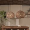 Beschikbaar in drie maten S, M, L, zijn de Tumbler Wing Lampenkappen gemaakt met een open metalen bolframe en vakkundig omwikkeld met Abaca schors voor een gedurfde en meer rustieke geweven uitstraling. De lampen zijn vervolgens afgewerkt met een kroon van met de hand gedraaid hergebruikt teakhout. Met een prachtige latticeweerkaatsing op oppervlakken en muren, is de Tumbler Wing Lampshade collectie een opvallende versiering voor kamers van elke stijl. Type: 83 x 83 x 65 cm.