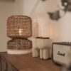 Beschikbaar in drie maten S, M, L, zijn de Twister Wide Tafellampenkappen een vrijstaande tafellamp, ontworpen in een ‘visserval’ stijl met een metalen frame en meesterlijk gewikkeld in Abaca schors voor een rustieke en aantrekkelijke geweven uitstraling. De lampen zijn vervolgens geknepen en gedraaid, wat stijlvol “twist detailing” onthult, en staan op een solide, met de hand gedraaide zandstenen voet voor stabiliteit en veiligheid. Bediend met een schakelaar en met een prachtige gevlekte gloed op oppervlakken en muren, voegt de Twister Wide Tafellampenkapcollectie prachtige details toe aan kamers van elke stijl.