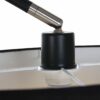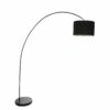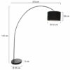 Zwart armatuur inclusief zwarte kap, met doorsnee van 40 centimeter en hoogte van 25 centimeter Beschikt over een E27 fitting. Geschikt voor alle soorten lichtbronnen tot maximaal 40 Watt. Niet mogelijk om te dimmen. De lamp is aan en uit te zetten met een vloer schakelaar. De omvang van de voetplaat is 35 centimeter en de totale hoogte van de booglamp is 180 centimeter. Bestel de vloerlamp nu online met onze service en garantie