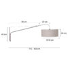 De wandlamp is afkomstig uit de serie Elegant Classy. Vervaardigd uit geborsteld staal en beschikt over een E27 (grote) fitting. Geschikt voor lichtbronnen tot 40 Watt. De wandlamp is uitschuifbaar van 90 centimeter tot 120 centimeter meter. De grijs linnen kap heeft een diameter van 50 centimeter en is 20 centimeter hoog. De Elegant Classy wordt inclusief zwart/wit snoer geleverd van 180 centimeter met schakelaar. Bestel de 9329ST vloerlamp nu online met de service en garantie van Lampbestellen.nl Wandlamp 2579ST + kap K1066R = 9329ST
