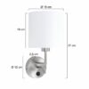 Deze moderne wandlamp uit de Mexlite Noor serie is zeer geschikt voor bij bed. En daarom ideale bedlamp. De kap is van linnen gemaakt en wit van kleur. De leeslamp is voorzien van een LED lichtbron; deze is 2.5 watt met kleurtemperatuur van 2700 Kelvin en lichtopbrengst van 240 Lumen. De kap is voorzien van een E27 (grote) fitting en geschikt voor lichtbronnen tot 40 watt, welke niet wordt mee geleverd. De diameter en de hoogte van de kap zijn beide 18 centimeter. Bestel de wandlamp nu online met de service en garantie van Lampbestellen.nl