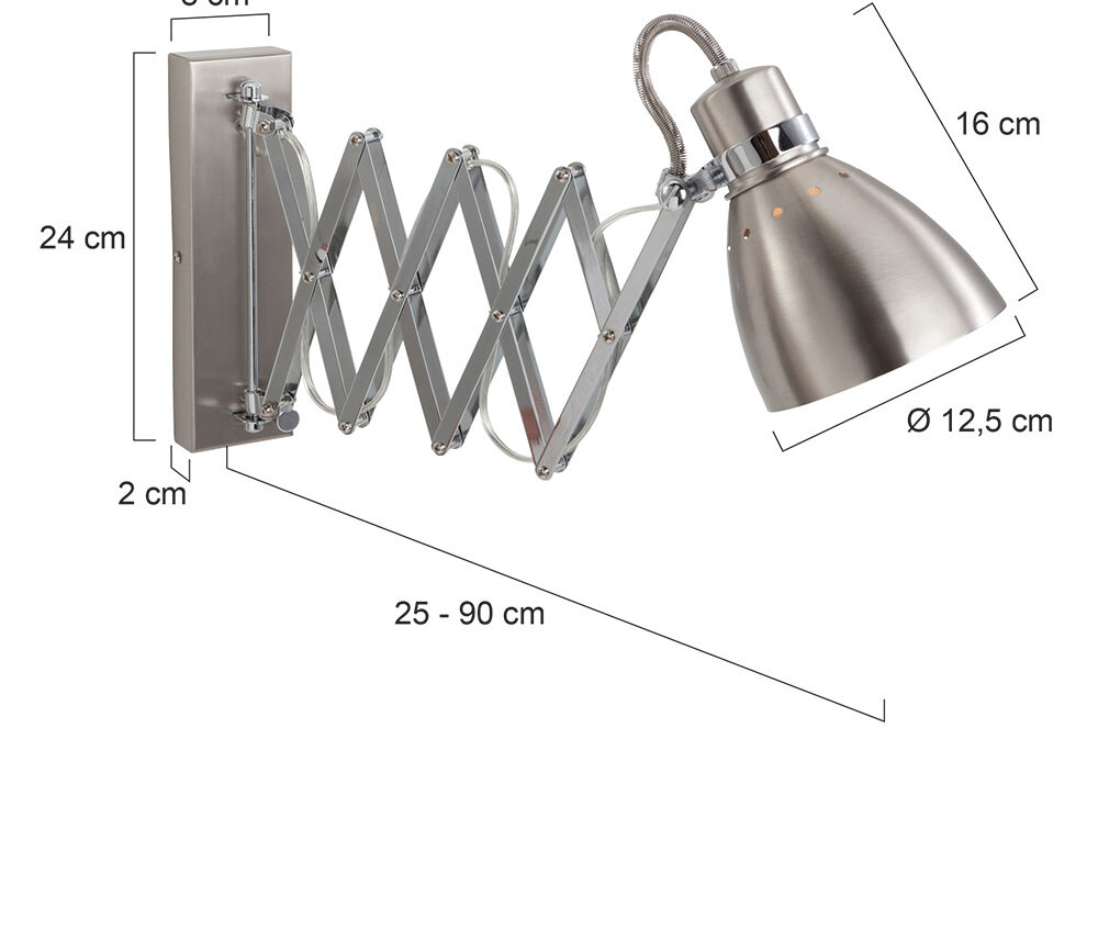 Ontdek de industriële stalen wandlamp 6290ST uit de Spring serie. Met draaidimmer verwerkt op de wandplaat. Deze wandlamp is voorzien van een E27 fitting voor maximaal 40 watt. Doordat de arm scharniert en de reflector kantelbaar is, kunt u deze zo richten dat u precies daar licht krijgt waar dit gewenst is. Dit armatuur is voorzien van een snoer maar kan ook rechtstreeks op de netspanning (centraaldoos) aangesloten worden.
