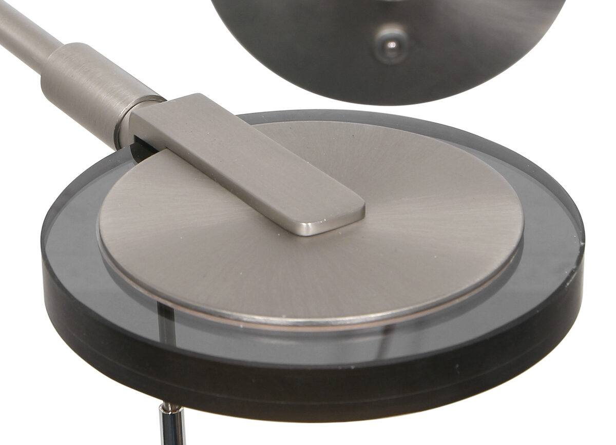 Grote Booglamp uit de Sparkled Light serie, wordt geleverd inclusief goud velours kap. Deze kap heeft een doorsnede van 50 centimeter en 20 centimeter hoog. Het armatuur is vervaardigd van geborsteld staalkleurig metaal en is voorzien van een verstelbare E27 fitting, geschikt voor alle type lichtbronnen tot 40 watt. Door de verschillende verstel mogelijkheden kunt u precies licht geven daar waar u het wilt. De maximale hoogte van de lamp is 240 centimeter.