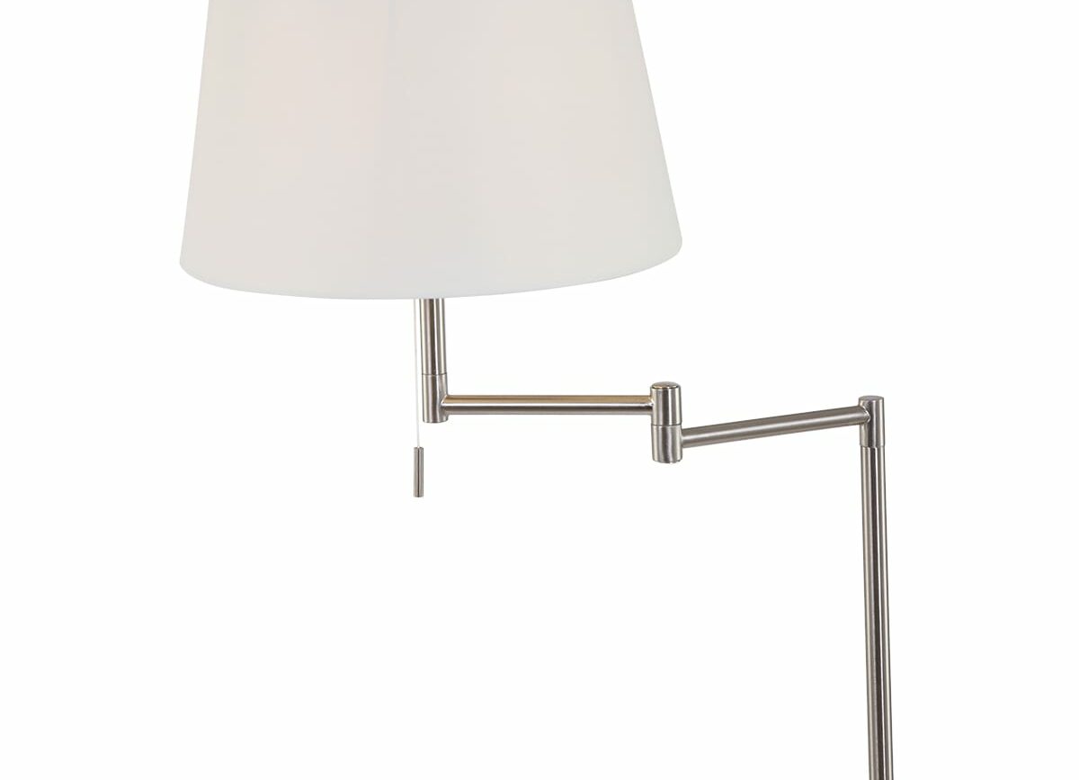 Een stalen vloerlamp 5894ST uit de Mexlite Bella serie, die geleverd word inclusief stoffen kap. De zwenkarm zorgt ervoor dat deze lamp precies daar licht geeft waar dit gewenst is. De Bella is te bedienen middels een aan/uit schakelaar in de vorm van een trektrouw. Beschikt over een E27 fitting maat en geschikt voor lichtbronnen tot maximaal 60 watt. De totale hoogte is 154 centimeter en heeft een reikwijdte van 45 centimeter. De kap is aan de bovenkant 24 centimeter in doornsnede en aan de onderkant 30 centimeter, de hoogte van de kap is 17 centimeter. Bestel de 5894ST vloerlamp nu online met de service en garantie van Aldorverlichting. Licht advies is om er een Philips LED 3 standen lamp in te doen. Dan heeft u geen dimmer meer nodig voor de juiste sfeer.