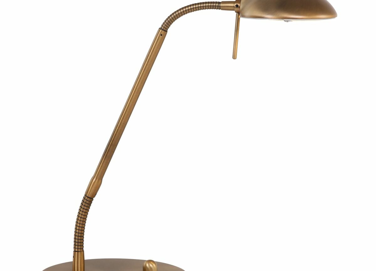 Deze bronzen Bureaulamp 7502BR uit de Mexlite serie. De tafellamp is vervaardigd van bronskleurig geborsteld staal. De arm is op twee punten te buigen, boven de voetplaat en voor de reflector. Het licht van deze tafellamp is te omschrijven als warm wit (2700 Kelvin). De lichtopbrengst van 400 Lumen, is terug te brengen met de draaidimmer op de voetplaat. Wilt u toch meer weten over deze lamp? u vind onze winkel in Castricum op de dorpsstraat. Aldor verlichting Castricum.