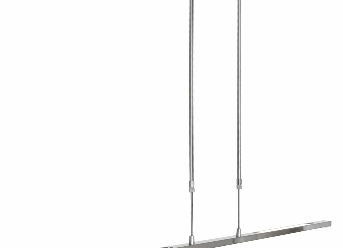 Deze Hanglamp vervaardigd uit metaal, kunststof en geborsteld stalen lamp komt uit de Zelena LED serie en heeft een moderne design uitstraling. Zeer functioneel doordat zowel de bovenkant 2 lichtpunten heeft evenals de onderkant. Voorzien van LED modules: de bovenkant 2 x 4,2 W en de onderkant 8,4 Watt. A+ energielabel. Kleurtemperatuur is instelbaar van minimaal 2200 Kelvin tot maximaal 4000 Kelvin. Voorzien van een drukdimmer, dus het dimmen van het licht en het afstemmen van de kleurtemperatuur zijn afzonderlijk van elkaar verstelbaar. De lichtopbrengst is aan de bovenkant 420 lumen per lichtbron en aan de onderkant 840 lumen per lichtbron. De totale lengte van de lamp is 122 centimeter bij 3 centimeter en is maximaal 115 centimeter hoog. Bestel deze hanglamp nu online met de service en garantie van Aldor Verlichting.