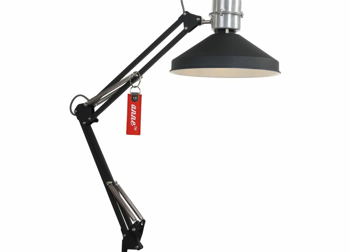 Noem het stoer, noem het industrieel, wij vinden hem vooral MOOI. Tafellamp van de serie Zappa. De lamp is gemaakt van zwart metaal met een aluminium opzet stuk. De tafellamp is verstelbaar in hoogte van 35 cm tot maximaal 80 cm. De kantelbare kap heeft een doorsnede van 18 cm. Op deze manier is de lichtval eenvoudig in te stellen. De binnenkant van de reflector is wit waardoor er optimaal licht uit komt. Dankzij de E14 fitting maat is de tafellamp geschikt voor alle type lichtbronnen tot 40 Watt. In het zware strijkijzer snoer is een aan/uit schakelaar gemonteerd. Bestel deze tafellamp nu online met de service en garantie van Aldor verlichting. 7702ZW van Anne-Lighting