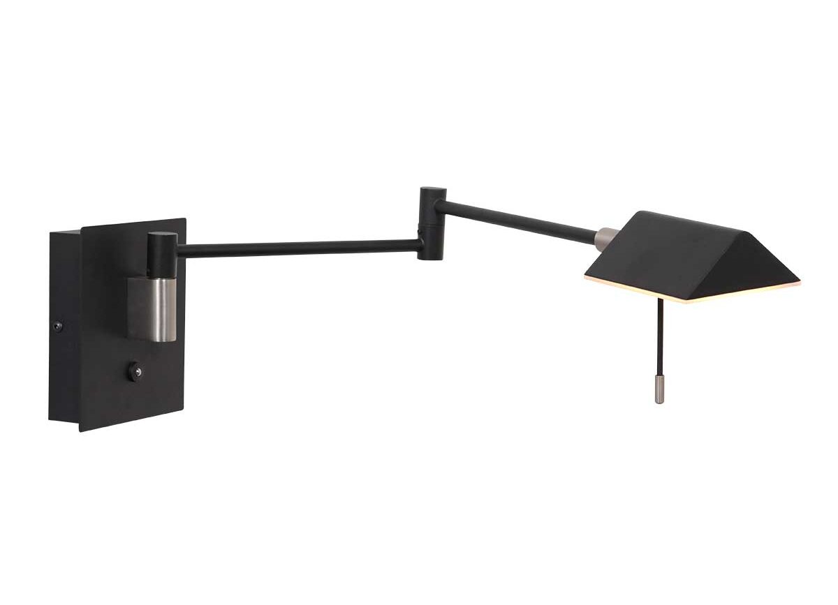 Deze wandlamp is vervaardigd uit zwart metaal. Voorzien van een E27 (grote) fitting en geschikt voor lichtbronnen tot 40 Watt. De Stang wandlamp heeft ook een apart leeslampje van 1 Watt met 2900 Kelvin en 100 Lumen. Beide lampen zijn afzonderlijk van elkaar te bedienen, onder aan de wandplaat zitten 2 aan/uit schakelaars.