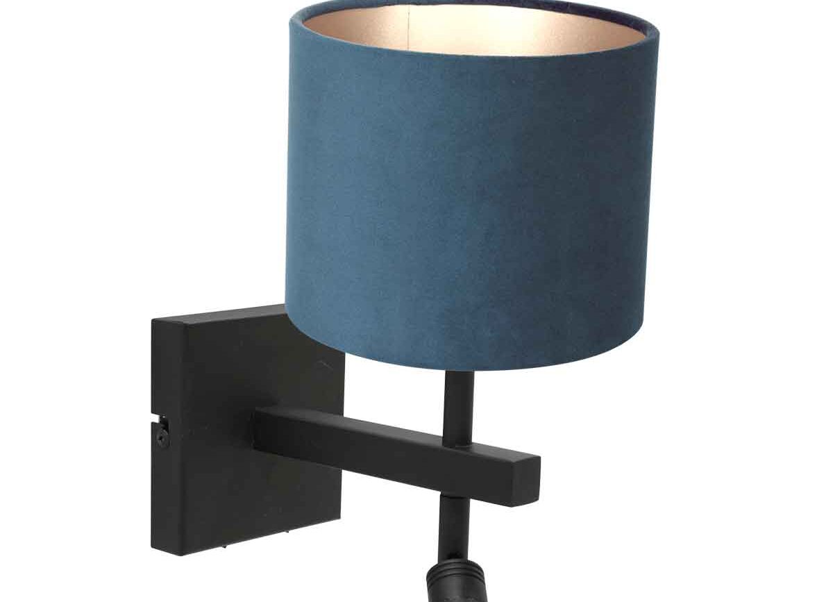 Zwarte Wandlamp Bloeba 4179ZW met goud velours kap